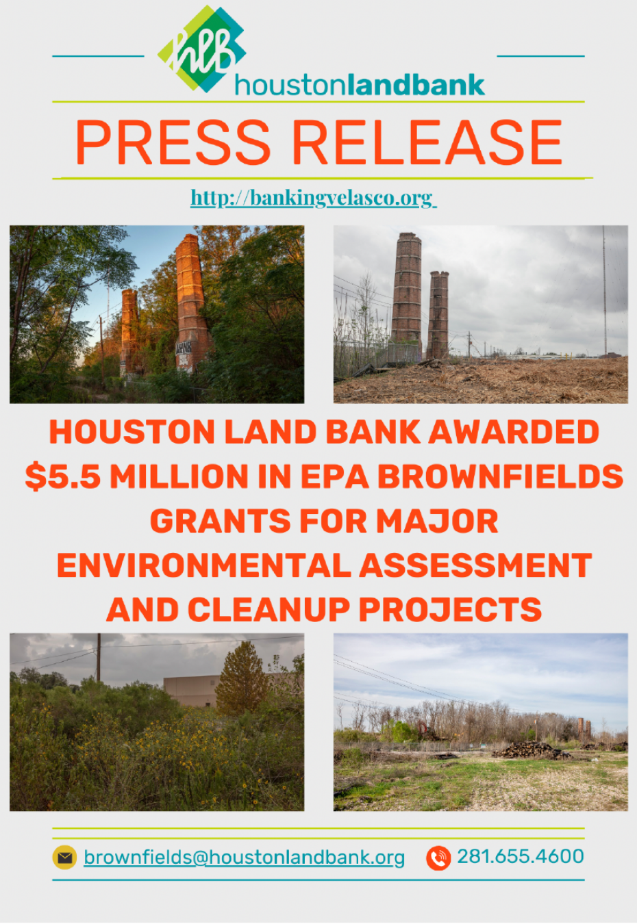 For several years, we have had the honor of working with the Houston Land Bank (HLB) as a strategic advisor and partner to build HLB’s capacity to redevelop underutilized properties throughout Houston. In 2020, we helped write and secure $6.1 million in U.S. EPA Brownfields grants, enabling the HLB to advance redevelopment plans for sites like the Former City of Houston Velasco Street Incinerator, Former Yellow Cab property, Settegast “Forest,” and several smaller lots complicated with environmental issues. We have used this grant as a launchpad for HLB’s Brownfields Program with ambitious plans to grow brownfields funding and redevelopment resources to bolster HLB’s ability to reactivate properties and address housing, environmental justice, and comprehensive community development needs throughout Houston.